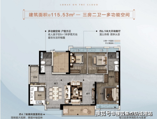 刚改优选户型:建面约115㎡南向园景横厅四房,6.9米横厅设计,空间开阔大气,4.7米南向景观阳台,采光通风俱佳,横厅设计提升空间利用率,同时增强家庭社交互动,四房设计可满足二胎家庭或三代同堂的居住需求,灵动空间布局,适配家庭成长变化。