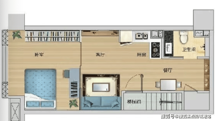 科学布局,空间变革 项目主推建面约55-57㎡的稀缺复式户型,充分利用5米的层高优势,打造出超越传统平层的空间体验。