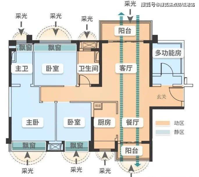 建面约116平的四房两卫,是广东人最爱的南北对流竖厅布局,双阳台设计,使得室内时刻充盈阳光,标准四房可容纳三代同堂,主卧还带走道式衣帽间,品质感满满。