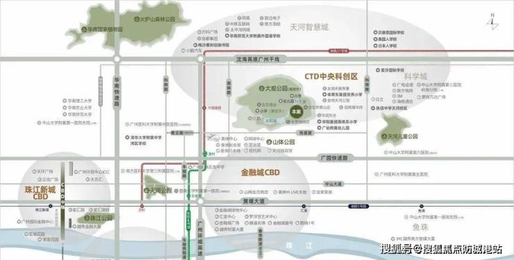 越秀观樾天湖坐落于广州市天河区悦景路以北、帝景山庄以西,地处天河智谷CTD(中央科创区),是天河区唯一同时拥有中央商务区(CBD)与中央科创区(CTD)双重优势的板块。项目周边聚集2500多家高科技企业,预计年产值1100亿,成广州第四增长极,名企如网易、太平洋网络、小鹏汽车等带动25万就业人口,区域发展潜力巨大。