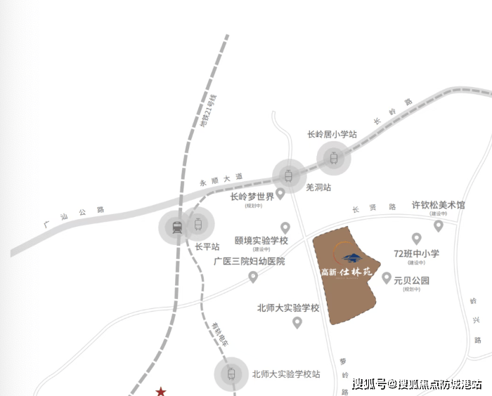 直线距离约800米地铁21号线长平站(1站区府、2站万达、5站天河)