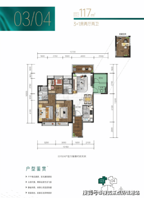 52 53 54栋 2梯4户03 04户型。四房北向户型