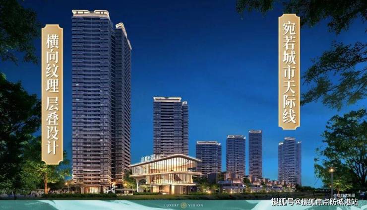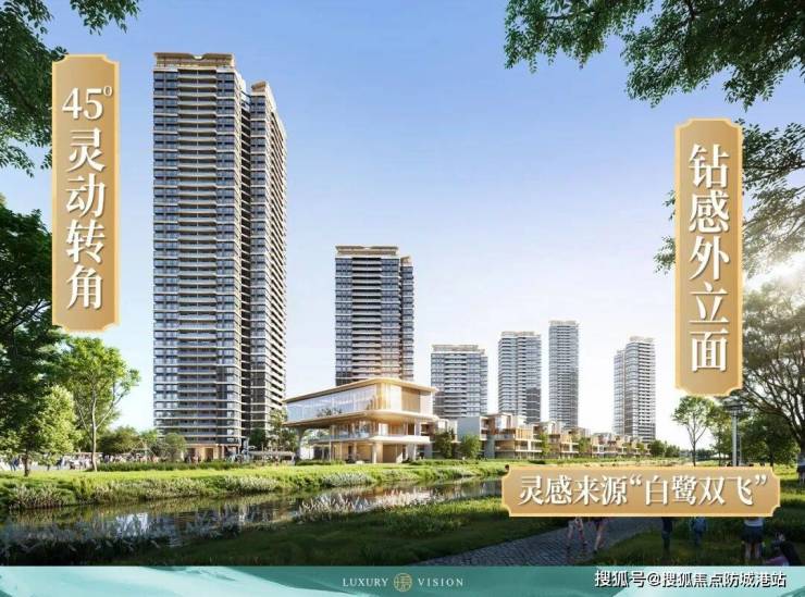 项目建筑以 “白鹭双飞” 为设计灵感,采用 45° 灵动转角立面设计,打造极具艺术感的城市地标建筑。建筑整体高低错落,两侧高耸、中部低伏,宛若白鹭展翅,立面以简洁线条与层次纹理营造优雅质感,商业裙楼采用简约线面组合,彰显大气格调;夜间灯光设计延续建筑美学,打造昼夜皆美的城市天际线,从建筑外观到归家动线,全方位彰显品质感与仪式感。