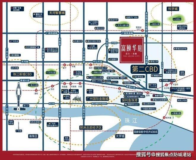 在交通网络方面,富力南驰·富颐华庭拥有得天独厚的区位优势。项目毗邻地铁五号线与十三号线交汇的鱼珠站,十三号线的珠村站以及规划中的十九号线茅岗站也近在咫尺。无论是前往珠江新城CBD,还是抵达新塘综合交通枢纽,均可在8站之内迅速到达。完善的轨道交通网络不仅提升了城市通达性,还将项目与天河主城、深圳、东莞、惠州等周边城市紧密联通,为居民提供便捷的出行选择和广阔的发展空间。
