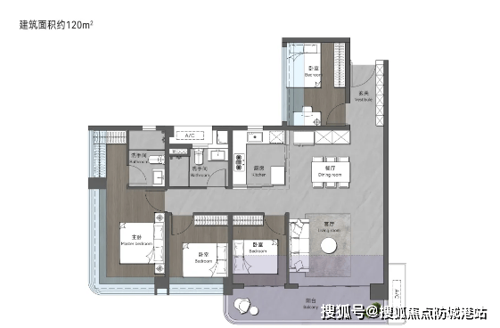 120㎡创意四房两卫:作为大宅之家的首选户型,该户型在空间尺度与居住舒适度上都有显著提升。宽敞的客厅与餐厅相连,搭配超大景观阳台,能够充分引入自然光线与新鲜空气,让室内空间更加通透明亮。四个房间布局合理,可满足家庭成员的居住、办公、学习等多样化需求,适合改善型家庭长期居住。