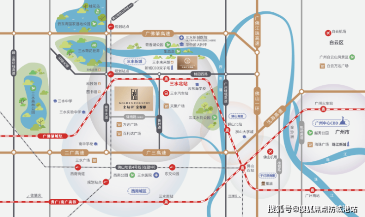 金融街金悦郡享有五维交通TOD门户的优势,轻轨三水北站就在附近,高速路网发达,包括广三高速、广佛肇高速等,连接广州荔湾、白云以及佛山南海桂城等地。未来随着佛山地铁12号线和4号线的开通,以及T20有轨电车线路的建设,将为居民提供更加高效便捷的出行方式。