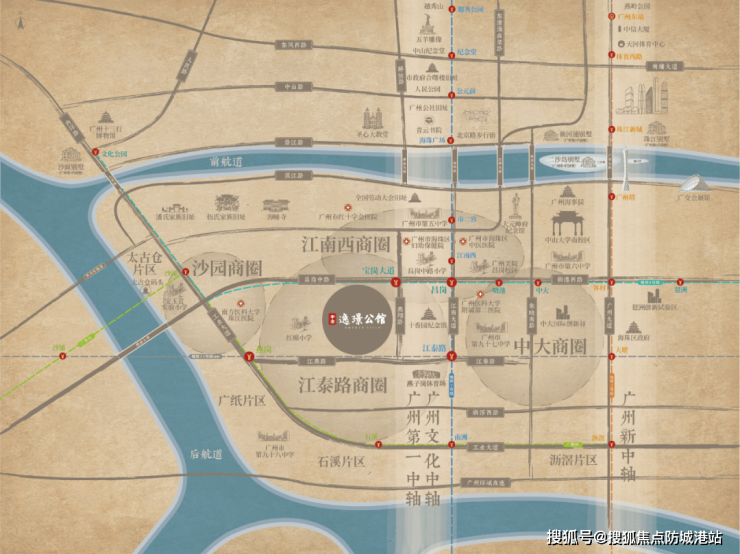 中冶·逸璟公馆项目地处广州市区海珠中心、江南大道之上的核心区位,尽享海珠区三条黄金居住走廊的价值汇集。