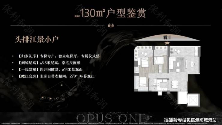 130㎡三房:南向三开间,得房率85%,总价680万起(珠江前航道同面积段户型总价超1000万);