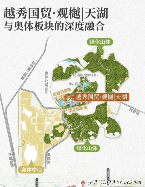 绝版湖山资源:位于天河核心区,拥有双湖(太阳湖、月亮湖)及三面环山的天然景观,是广州罕见的城央低密湖居地。