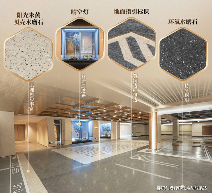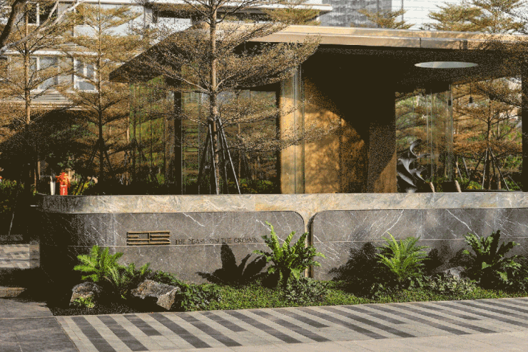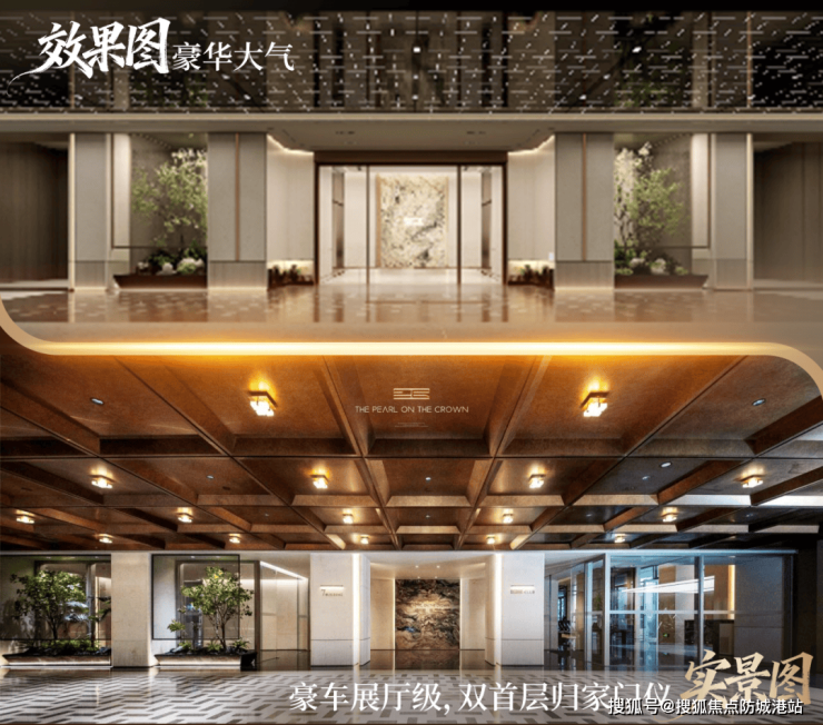 招商华玺的社区规划并非止步于建筑排布与绿化率等基础指标,而是以“归家仪式感”为线索,构建了一条从城市界面到私密居所的完整体验链。项目入口采用长约66米、高逾8米的公建级大门设计,材质上大面积运用星耀灰奢石、福鼎黑石材拼花及藻井铝板穹顶,形成极具识别度的城市封面。这一设计不仅满足视觉震撼,更通过尺度与材质的叠加,传递出对业主身份的尊重。