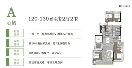 142㎡四房两卫:专梯入户,南北通透,采光通风良好,配备大阳台,居住舒适度高。