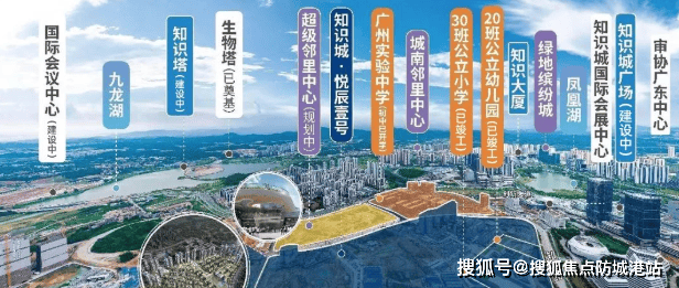 项目处于凤凰湖与九龙湖两大核心板块交汇处,周边汇集了众多产业中心,如正在建设中的知识城广场和知识大厦等。未来将重点发展总部经济的九龙湖片区,致力于打造“城市化科学园”为特色的知识创新枢纽。随着地标群的建设,环九龙湖总部核心经济带将成为知识城未来十年的核心CBD,具有巨大的发展潜力。