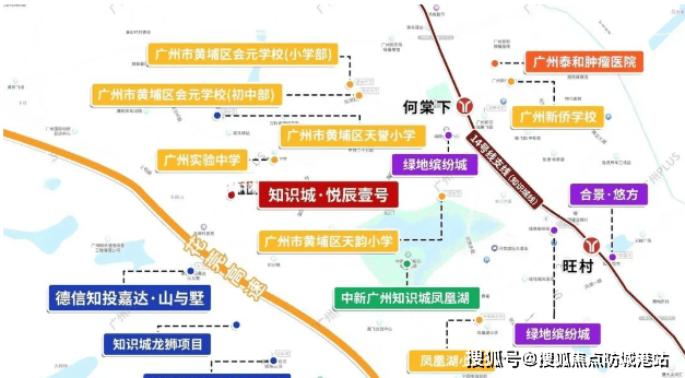 项目周边直线3km范围内有3个地铁站,距离最近的地铁站仅1850米,同时周边直线1km内有14个公交站,公共交通极为便捷。地铁14号线何棠下站、快速路创新大道和永九快速(建设中)、花莞高速知识城出口等,共同构成了四通八达的交通网络,方便快捷地连接科学城、天河等地。