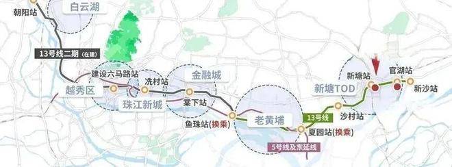 尚东阳光位于新塘板块,地处接驳黄埔的桥头堡,交通便利。项目步行约700至1200米即可到达地铁13号线沙村站,从该站出发1站可达黄埔,7站可达天河,满足市区核心区域的高效通勤需求。未来13号线二期工程完工后,将串联新塘与金融城、天河公园、珠江新城、越秀、荔湾及白云朝阳等多个核心板块,进一步提升区域交通承载能力及可达性。