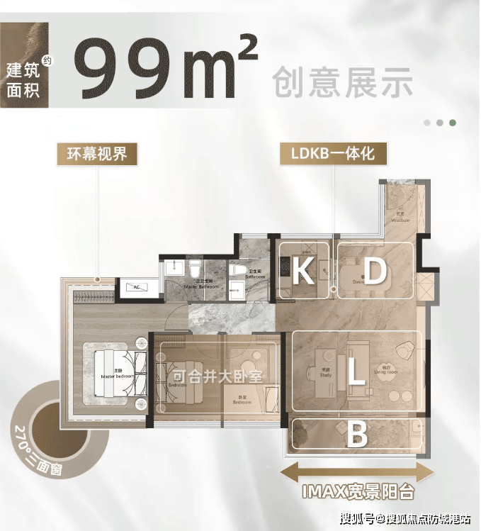 总价600万起,主打约40㎡IMAX横厅与16.8米南向面宽,LDKB一体化设计,空间感媲美140㎡以上产品。主卧套房配置双台盆、双飘窗,私密性与舒适度兼备,专为追求品质生活的改善客群打造。
