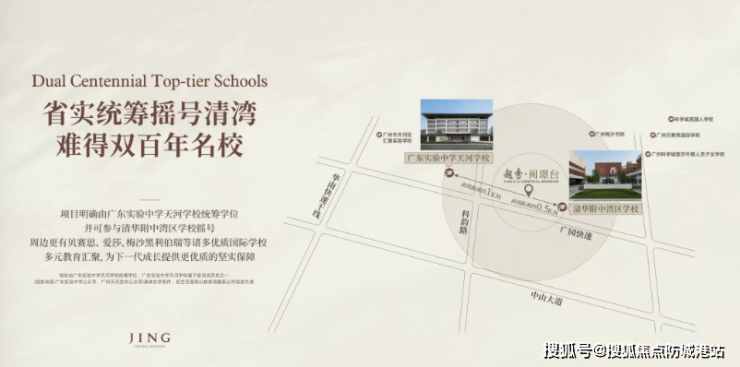 配建公立幼儿园、省实天河学校统筹、清华附中湾区学校摇号,双 TOP 名校、12 年全龄。
