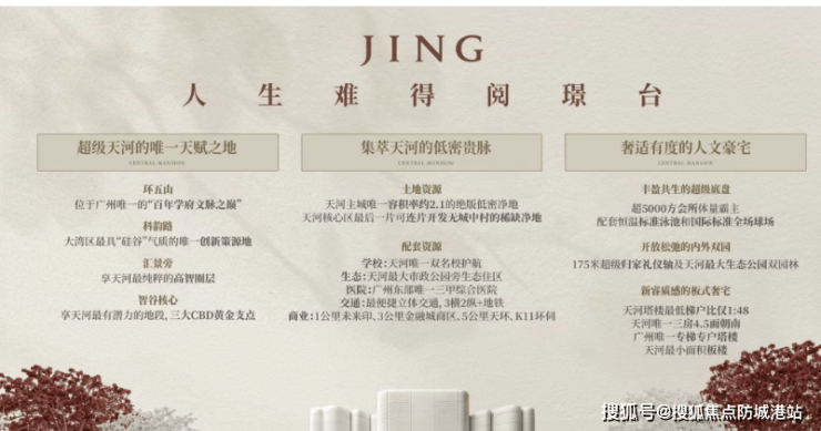 六维稀缺:天河 2.1 超低密、省实统筹 + 清华附中摇号双名校、全南向板式、新规 100% 使用率、专梯专户、高智圈层,密度 / 教育 / 产品 / 使用率 / 私密 / 圈层六维稀缺。