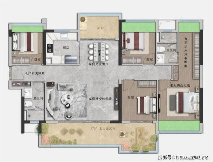 建面约120㎡/4房2厅2卫:宽敞明亮的空间布局,为中等规模家庭提供舒适的生活环境。