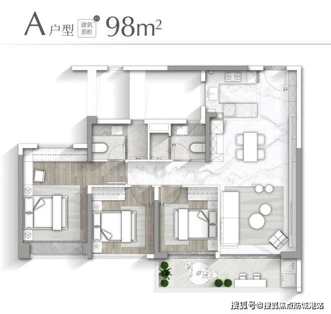 123㎡四房有两个版本(B户型和D户型),都做到三卧朝南,阳光充足。厨房是半开放中西厨,客厅餐厅厨房连成LDKG一体空间,使用动线顺畅,家人相处更温馨。整体改善属性明显,住起来舒服大气。