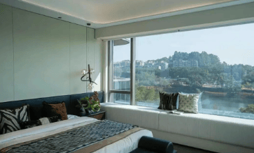 190㎡大平层:采用南北对流双阳台格局,南向配置9.4米超长景观阳台,直面太阳湖无遮挡视野;四房布局中,三间卧室均朝南望湖,实现“主卧+次卧+书房”三重湖景享受,得房率远超市场平均水平。