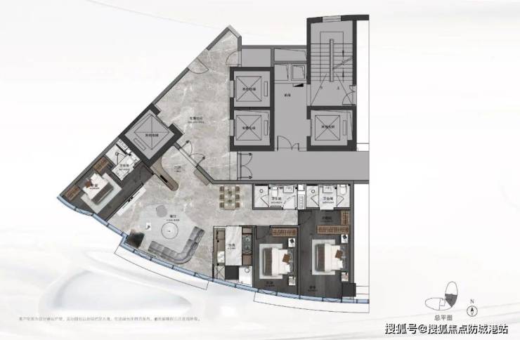 项目采用全中空low-e静音玻璃幕墙和曲面建筑设计,勾勒出与珠江水呼应的独特曲线,既提升了建筑的隔音隔热性能,又彰显了尊贵气质。同时,注重空间布局,满足不同户型业主的需求。