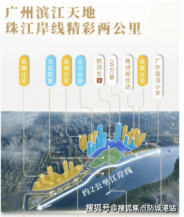 项目位居白鹅潭(广州五大世界地标商圈之一),属珠江后航道核心,占据超 2 公里江岸线。交通实现 “水陆游轨” 多维覆盖:11 号线鹤洞东站(地铁上盖,换乘之王,30 分钟达城央)、5&6 号线接驳,3 横 2 纵路网 + 水上巴士,1 小时贯通大湾区。教育配套顶配:自建 12 班幼儿园(荔湾区青少年宫附属,年底招生)+30 班广外附属荔湾小学(2024 年 9 月开学),2 公里内 18 所优质学校环绕。商业依托 20 万㎡双模商业(综合商业体 + 慢生活街区),璇湾坊已开业,联动聚龙湾太古里、广钢星河 COCO Park 等,形成百万方商圈;医疗覆盖三甲资源,外揽 9.6km 珠江岸线,内享 18 万㎡广船滨江公园,生态与繁华兼得。