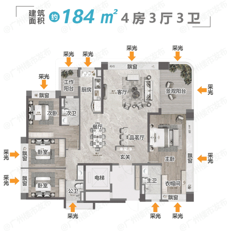 主力户型以大平层为主,部分户型配有约20-80㎡的空中院子,非常适合追求高品质生活的家庭。房间内部空间利用率高,采用独立电梯厅设计,确保住户隐私的同时,也提升了居住的舒适度。小区内设有双泳池,常温泳池和室内游泳池总面积超过800平方米,是黄埔区唯一一个配备双泳池的住宅项目。