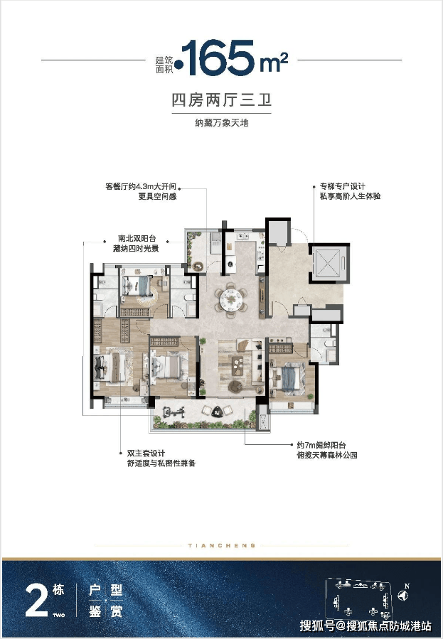 振业天成主推建面约104-168平米的四房户型,两梯两户或两梯三户的设计,保证了住户的隐私性和居住舒适度。更低的梯户比和高效的布局,使得每户都能享受到良好的采光和通风条件。