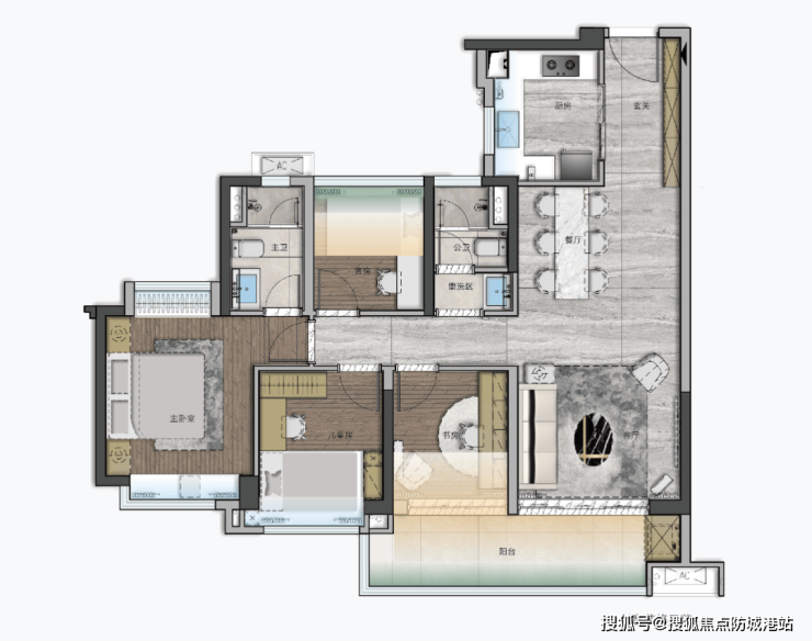 这个户型,有更富足的卧室面积,更加适合三胎进阶型家庭或者三代同堂。