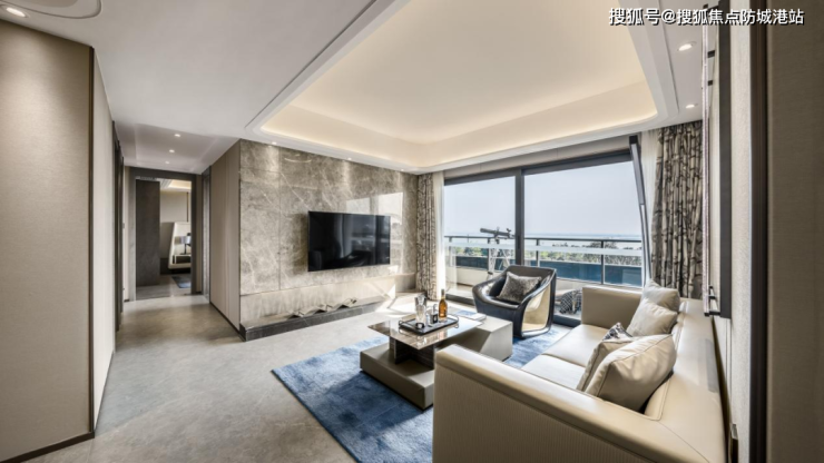 天幕海景阳台,不仅纳一线海天入室,极大的采光面通联双厅,进一步增加了厅堂的通透性,让整个室内展现出海景大宅的气质。