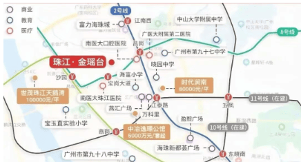 珠江金瑶台距离地铁8号线宝岗大道站约420米,距离地铁2号线昌岗站约830米,是一个双地铁楼盘,出行十分便利。无论是乘坐地铁还是自驾,都能快速到达珠江新城、琶洲等重要商圈。周边道路网络发达,方便居民前往天河、越秀等其他主要区域。