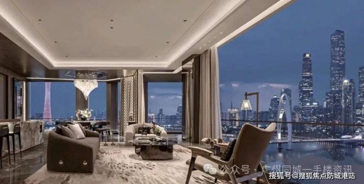 项目所有户型均标配 4.1 米超高层高,相比常规住宅,垂直空间的拉伸感让室内通透明亮;270° 环幕横向落地窗更是点睛之笔,推开窗就是广州塔与珠江同框的巨幅江景,真正实现 “开窗放入大江来” 的磅礴视野。约 100㎡的一体化社交横厅,更是将生活场景无限延伸:清晨可在此开启远程工作会议,午后能邀约挚友举办私人藏品品鉴会,夜晚则伴着珠江璀璨夜景小酌,居家、会客、私享等多重需求可从容切换。