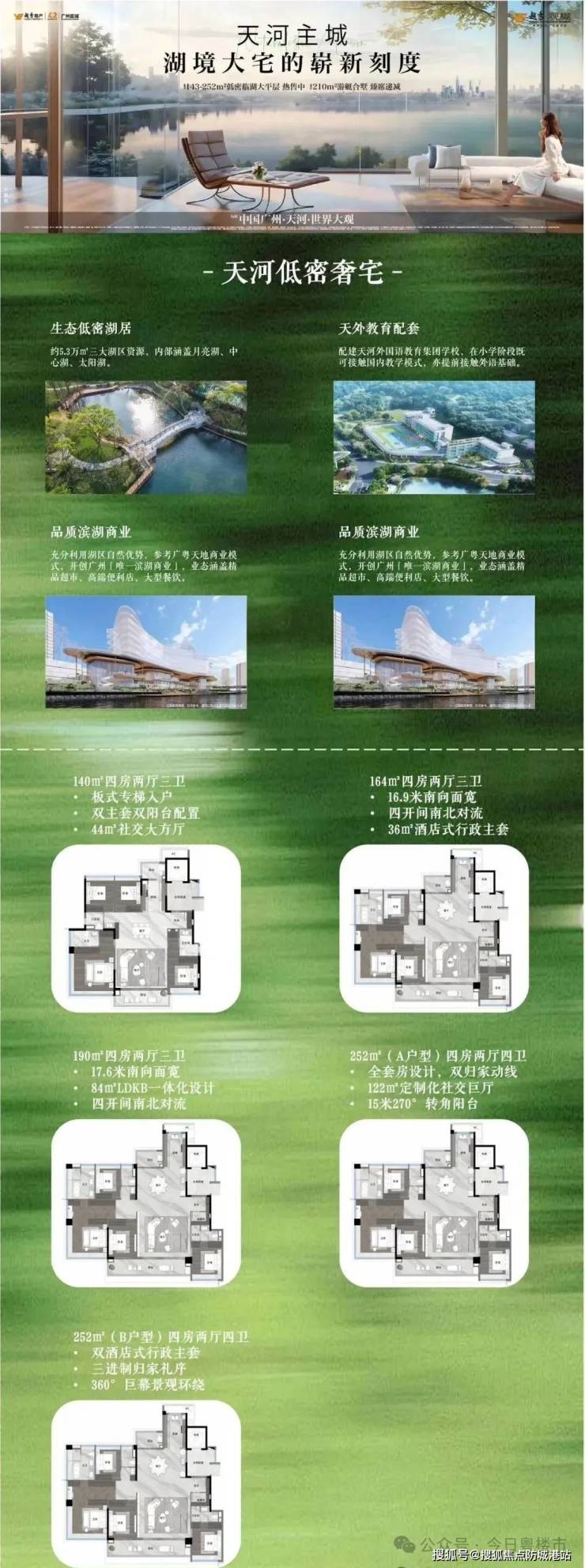 越秀·观樾(别名:湖樾花园)是位于广州天河智谷板块的一个高端住宅项目,由知名的越秀地产开发。该项目占地约20.64万平方米,提供建筑面积约为140至252平方米的临湖大平层住宅,容积率低至约1.98,绿化率极高,为居民提供了舒适宜人的生活环境。