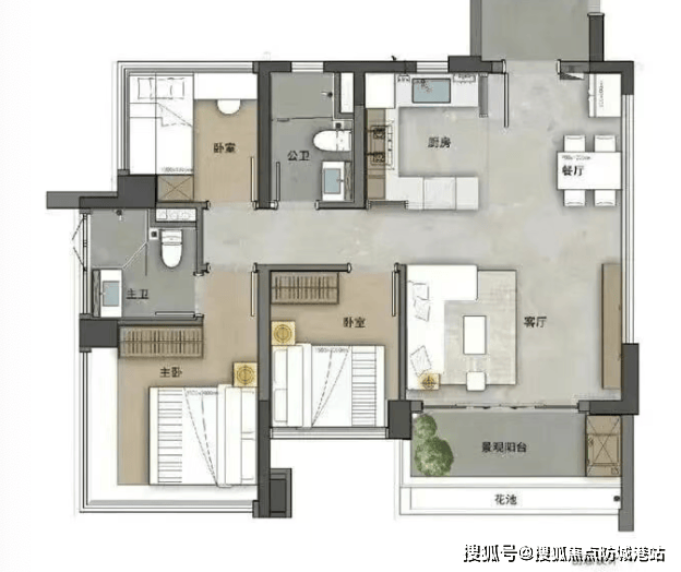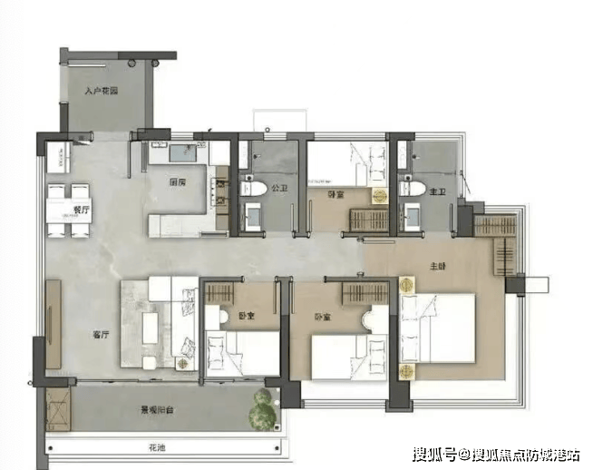 130㎡四房三卫:双主卧设计,南北双阳台,独立家政间,奢适大平层体验,总价299万起!