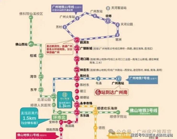 去年子动工的佛山地铁11号线的换乘站——【永丰市场】站,直线距离本项目约1.3公里。唯美臻岸华府的业主日后仅需在此搭乘至【鹤洞东】站换乘广州地铁11号线(在建中),即可几乎游遍全个广州!