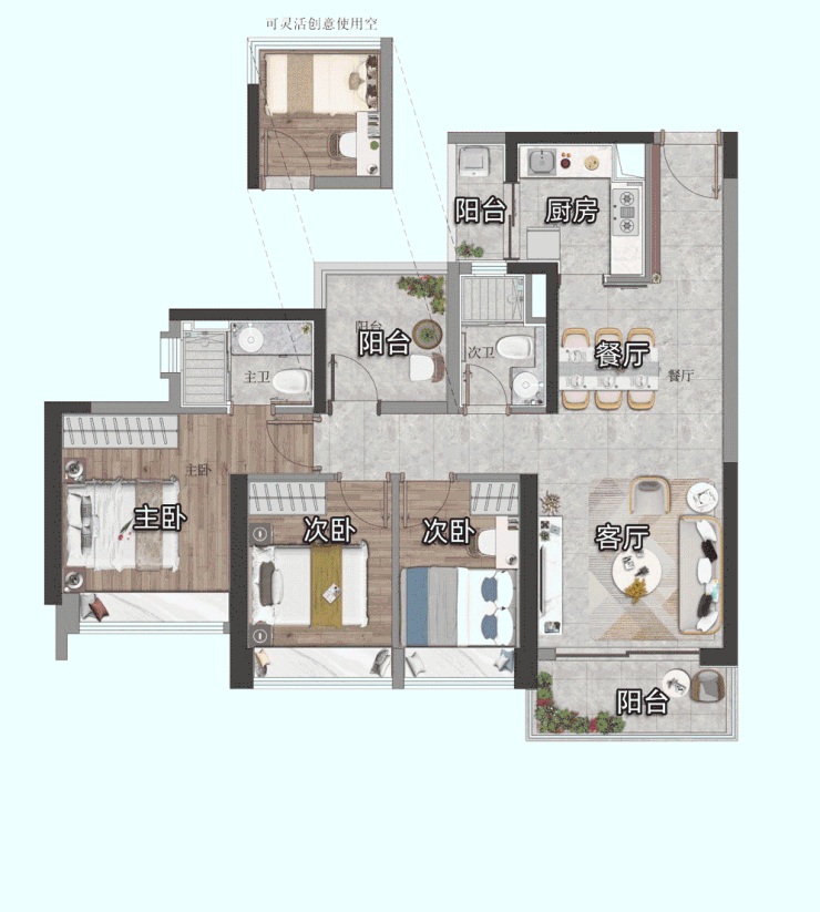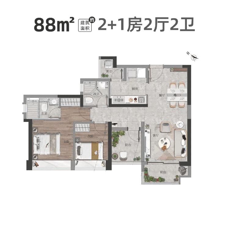 建面约87㎡户型示意图