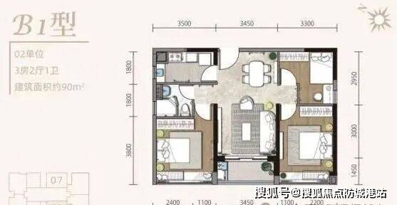 ✅ 建面约92㎡3房2厅1卫(B型)|起步家庭刚需|360万+总价