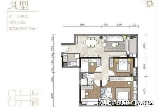 ✅ 建面约122㎡4房2厅2卫(A型)|大家庭首选|南向单边户型