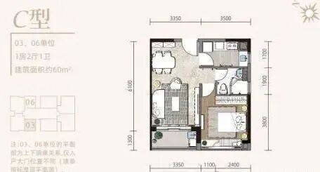 ✅ 建面约61㎡1房2厅1卫(C型)|单身贵族首选|220万/套起