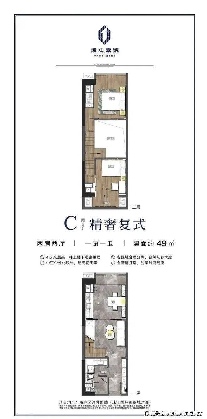 珠江壹号主推49-95㎡时尚LOFT空间,4.5米层高,使用率非常高,买一层可享受两倍的奢阔空间。而且户型多样,总价可控,能满足各阶段的住房需求。