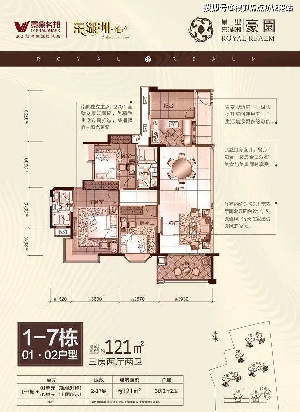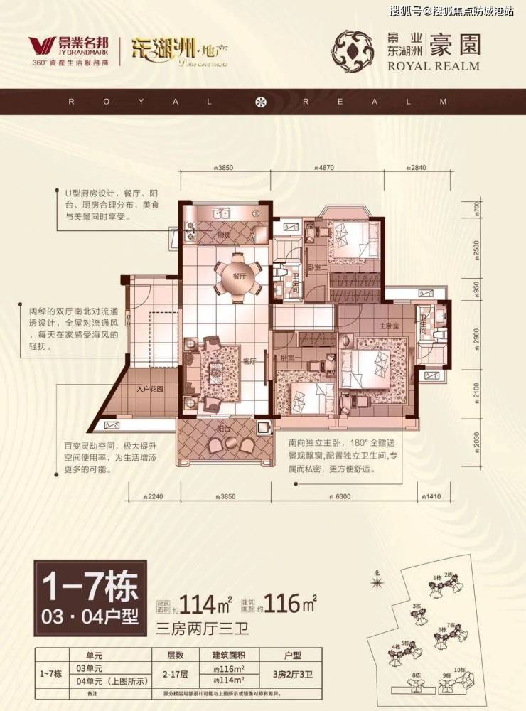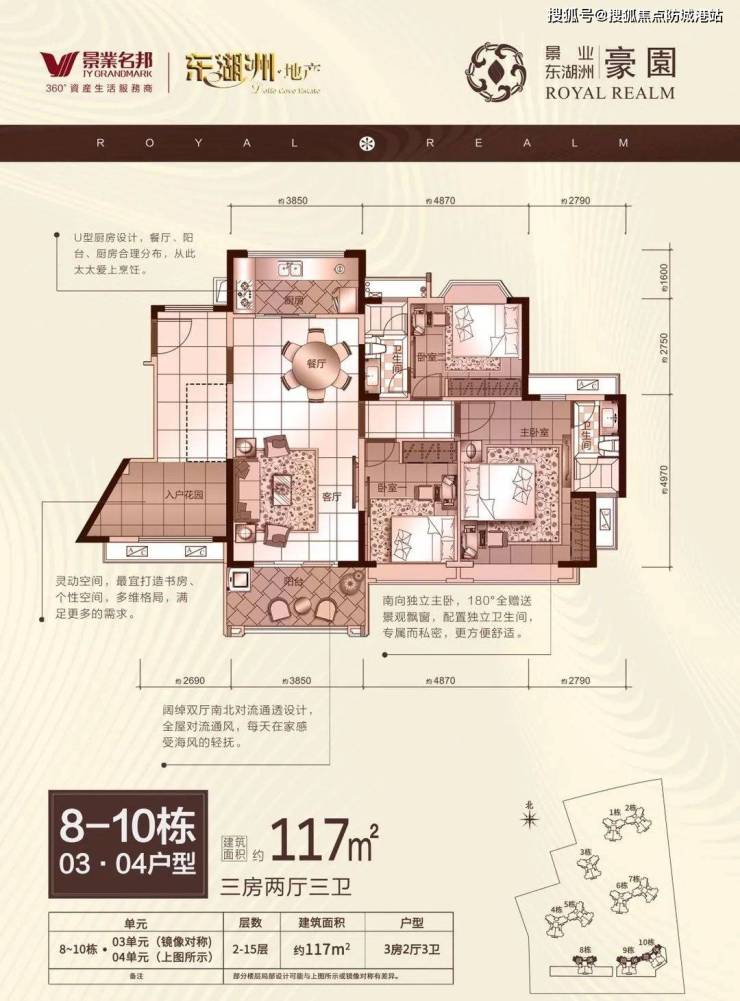项目全部为15-17层低密度轻奢洋房,背山面海尽显名门风范,建面94-120㎡三至四房方正实用,南向三房、对流四房两大经典人居格局,可直面阳光海岸