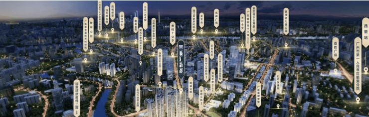 A:5公里范围内覆盖荔胜广场、西城都荟、聚龙湾太古(在建)等八大商圈,社区自带4,700㎡商业空间,满足日常购物需求。