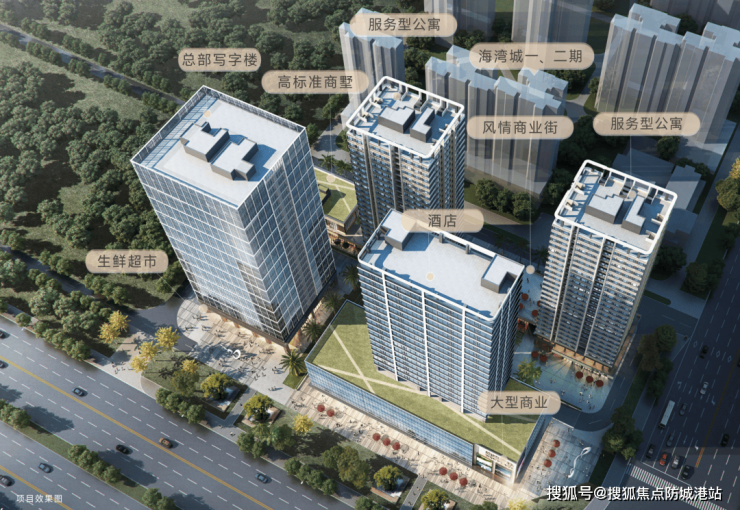 海湾城全新三期,由四座高层建筑及一座商墅组成,涵盖服务型公寓、大型商业、酒店、总部写字楼及商墅等高价值新贵资产。