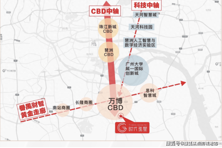 时代珑星坐落于广州番禺万博CBD核心区,北承珠江新城、琶洲会展中心,南接南沙自贸区,西连广州南站,占踞广州CBD中轴。项目距万博商务区仅3公里,周边汇聚奥园集团、欢聚集团等超1万家企业总部,区域经济活跃,未来价值潜力巨大。