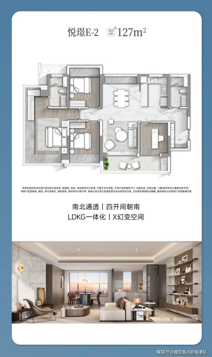 产品:123-180㎡灵动户型,全屋智能4.0,得房率超80%;