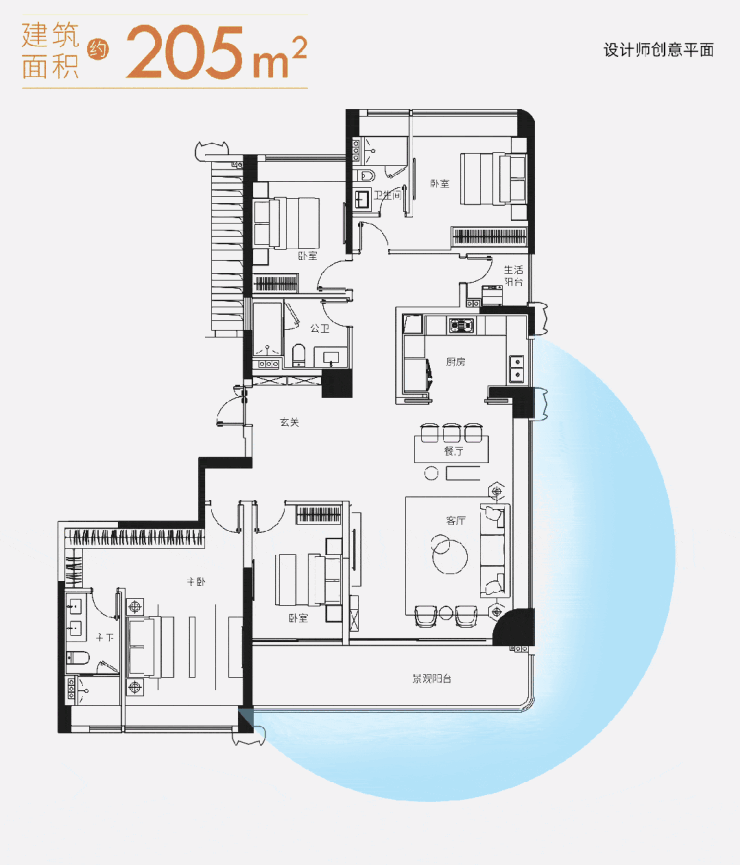 产品设计也有突破,在极卷的大平层产品中另辟蹊径,设计与空间格局更为崭新,记忆点十足。