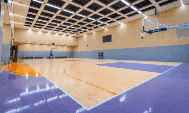 赛事级室内篮球场面积达700㎡,铺设专业运动木地板,墙面采用木纹吸音板+防撞棉,隔音效果极佳,同时还配置了新风及空调系统。