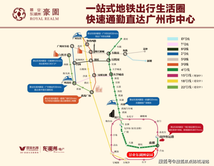 广州最快地铁18号线即将开通,项目3站公交接驳,1站直番禺广场商圈,5站45分钟畅达珠江新城,畅享45分钟CBD生活圈!