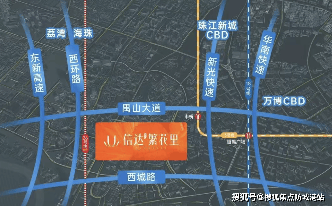 虽然距离市桥地铁站的具体步行或骑行时间未提及,但信达·繁花里的地理位置使其成为通勤者的理想之选。规划中的26号线有望在禺山大道和西环路交界处设站,进一步提升了该区域的交通便利性。周边还有两大主干道——禺山大道、西环路,提供了通往市区及周边地区的便捷通道。