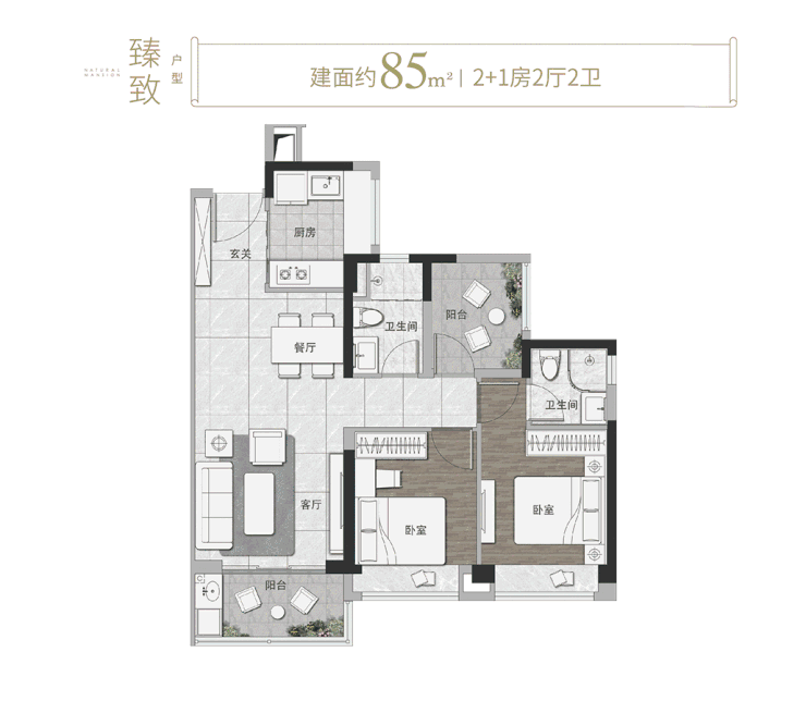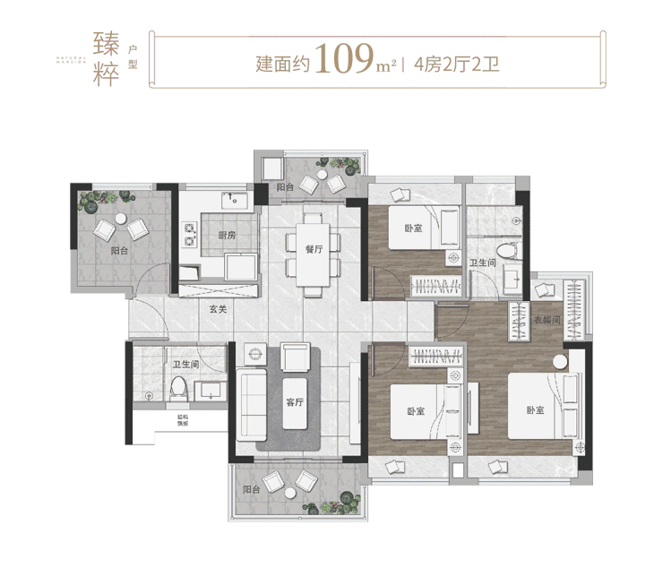 整个项目园林呈倒“U”型中轴对称布局,以公园式的核心景观环抱建筑,楼栋采用点式纯南向围合布局,楼间距最大超100米,楼体间无遮挡,通风采光极佳,保证私密性的同时,实现户户看景。